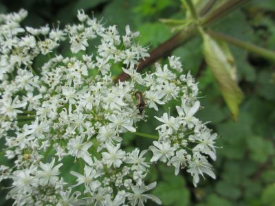 前年同様標高1,050mの登山口まで延びる林道を進み入るが、案の定この時季はミズキとタニウツギが満開で、これを掬いながら匍匐前進で標高を稼ぐ。トウホクヒメハナ、ミチノクヒメハナなど順調に成果を挙げるが、ここで採れるセスジヒメハナは林道入り口の間木野付近で採れた個体群とは随分雰囲気を異にしていた。