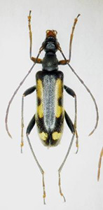 それから17年の年月を経て、久しぶりのかの地への訪問は反対のみなかみ町側から。湯檜曽にて国道を離れ、藤原湖~湯ノ小屋温泉経由で更に奥へと進むうちに、やがて照葉峡と呼ばれる一帯を通過する。小雨模様の中、この辺りから時折目にするヤマブキショウマを掬いつつ前進するが、ほどなく峠が近づいてきた頃には雨も上がって薄日も射し始め、期待通り周辺のミズキやゴトウヅルなどの花から次々にピドニアがネットインする。この日、僅かな時間枠ではあったものの、幸いにもかようにピドニアの活動に好適な環境下での採集調査を楽しむことができたような次第。