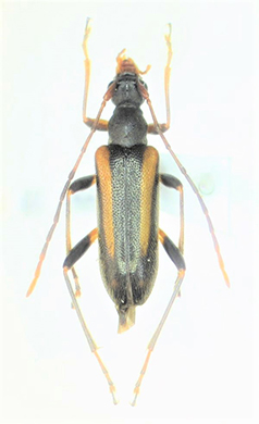 ナガバヒメハナカミキリ(Pidonia signifera)♀ 富山県富山市有峰 alt.1,100m 21.ⅵ. 2019本種は本州から四国、九州に至る各地において、晩春の頃よりシーズン最初に出現する長型ピドニア(Pidonia亜属)の優占種で、特段面白みのある特徴を備えているわけでもなく、それ故注目される機会も少ない種と言える。