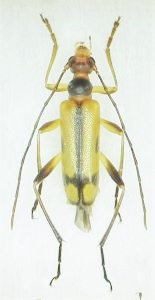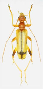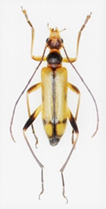 マツシタヒメハナカミキリ(Pidonia matsushitai)♂ 群馬県片品村菅沼 alt.1,750m 16. ⅶ. 2021 ゴトウヅル花上(写真左)以前ご紹介したマツシタヒメハナ♂黒化タイプに再度遭遇できたので、改めてここでご紹介したい。