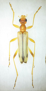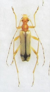 今回は、そのミヤマヒメハナの両アンテナ欠損個体。お恥ずかしながら採集した時点ではそれとは気づかず、展足の際にアンテナが両方とも付け根から欠損しているのに気がついたのだが、今思い起こしてみても何故こんな異常個体を採集時点で気づけなかったのか、我ながら実に???・・・である。