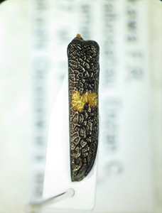 この日、帰りの列車内で違和感を感じた私が左二の腕に食らいついたマダニを発見するや、同行者たちから嬉々として「や~い、アラメハナのエリトラを拾った祟りじゃぁ~!」と囃されたのが懐かしく思い出される。頭部が無いので一頭にはカウントしない!などと皆から揶揄われたちょっぴりかわいそうなエリトラ、その後しばらくは四角紙の中に放置されたままであったが、さすがにこの貴重な記録を埋没させるわけにもいかず、後日栄光の記録の証としてしっかりマウントして差し上げ、今やあの日の思い出と共に私の標本箱の中で燦然と光り輝いているのであった。