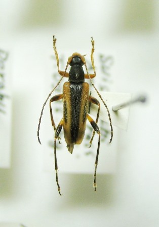 セスジヒメハナカミキリ(Pidonia amentata)♂ 静岡県田方郡天城湯ヶ島町水生池!? 9. ⅴ. 1981