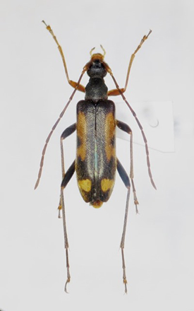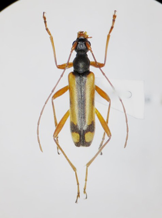 下の写真は、同日同場所で獲られたホソガタヒメハナP.semiobscuraの♀で、こちらは普通に脚が黒かったため、余計に現地での混乱をきたす原因となってしまった。